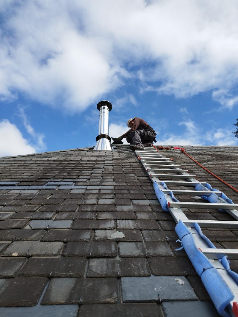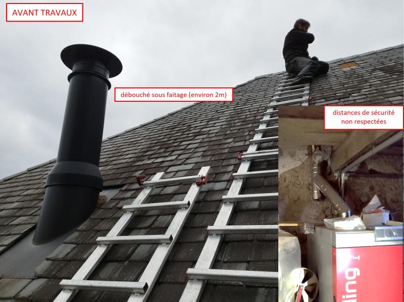 - Débouché du conduit largement en dessous du faitage