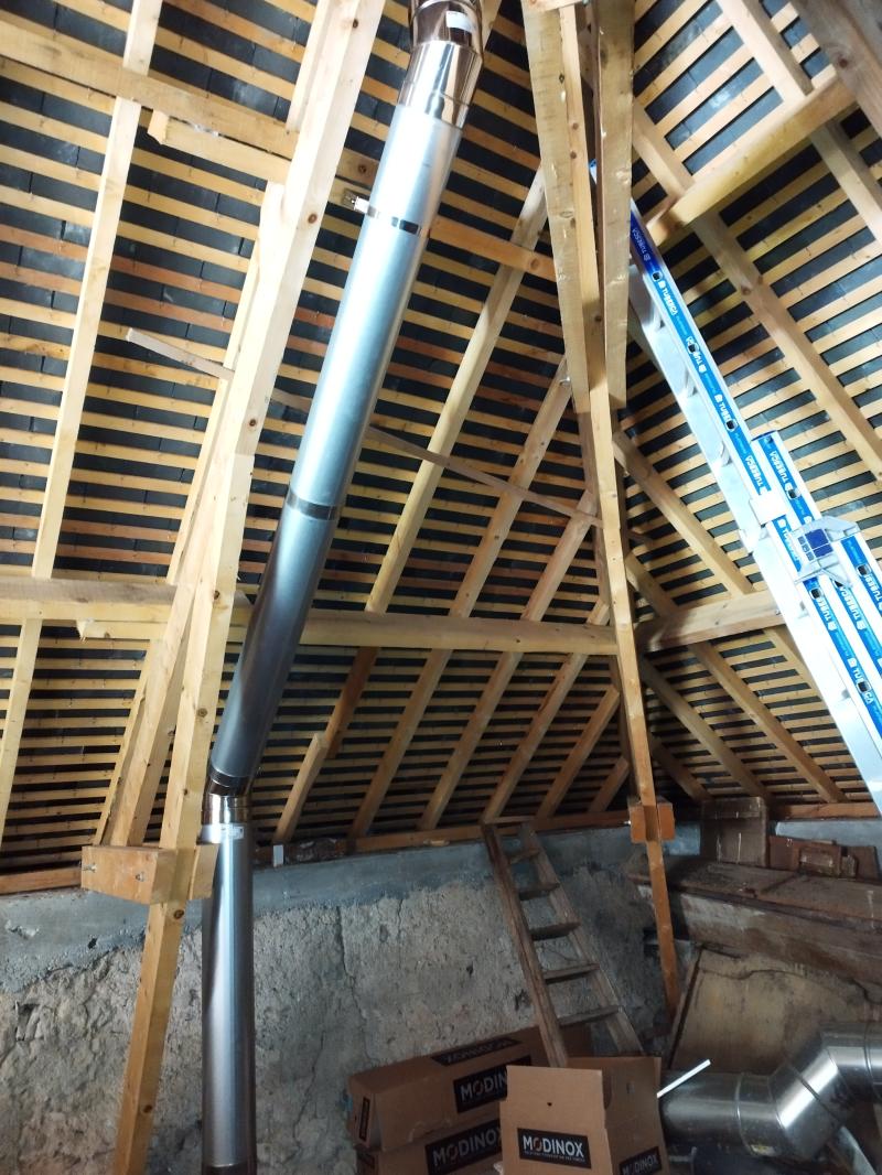 Un devis complet comprenant la modification de la chaudière (voir autre fiche) et le remplacement complet du conduit de fumées a donc été réalisé. Après acceptation, les travaux ont donc commencé par le remplacement du conduit de fumées.