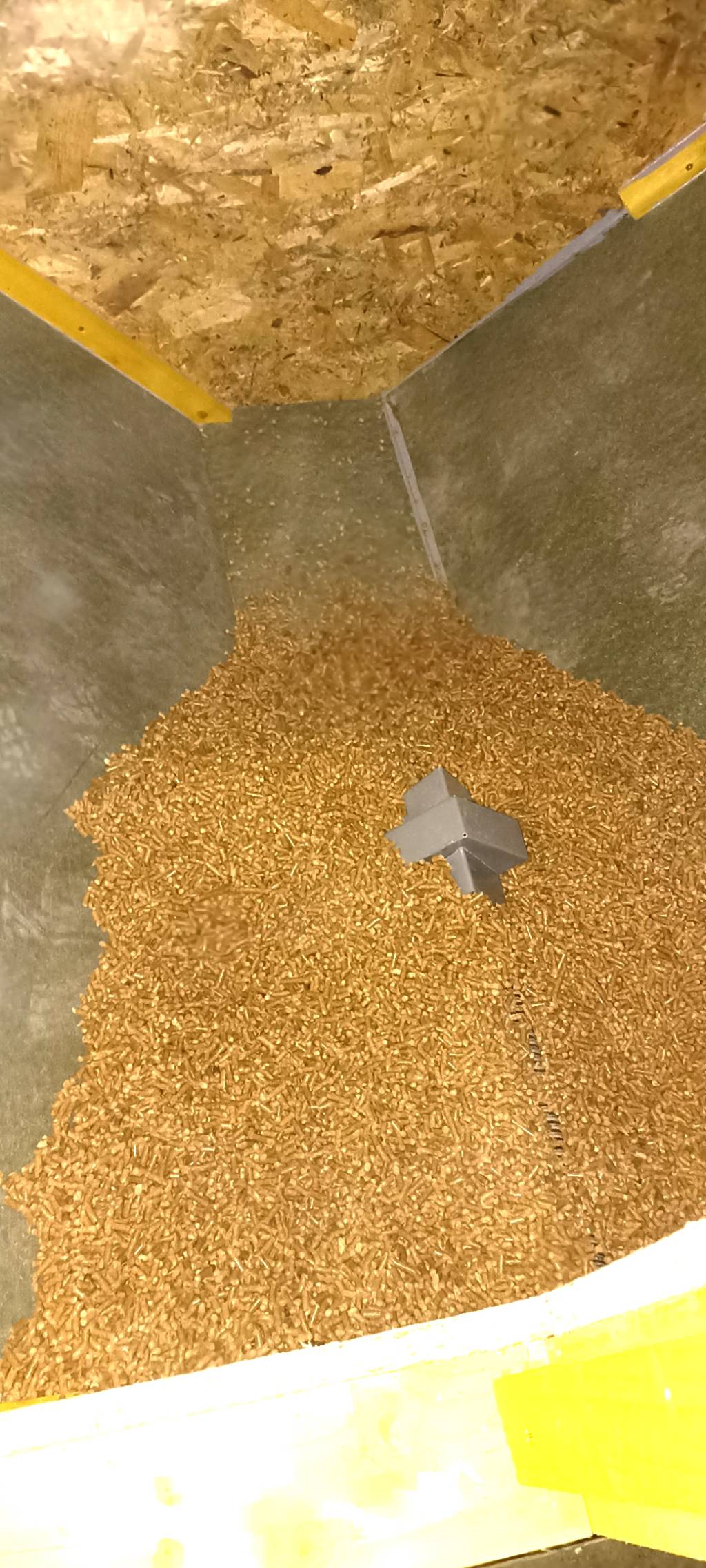 A Sénac, en Haute-Pyrénées (65), fabrication d'un silo à granulés sur mesure dans un local très restreint pour l'alimentation d'une chaudière à granulés Froling PE1.