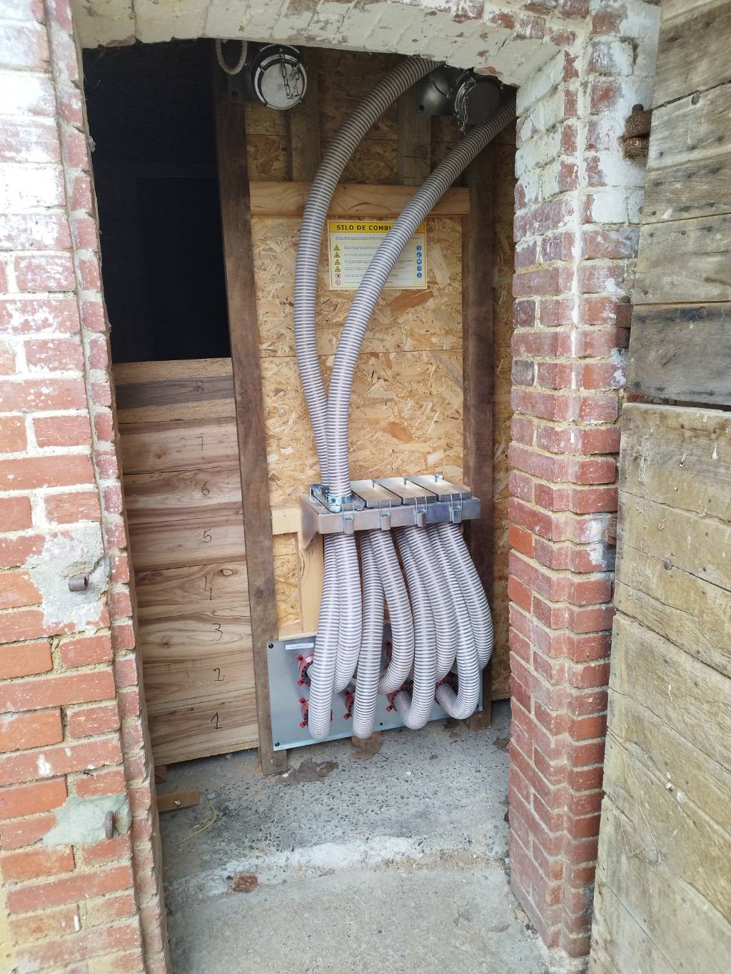 Nous avons donc proposé l'installation d'une chaudière automatique à granulés Froling avec réalisation d'un silo bâti (réalisé par le client suivant plans fournis par nos soins) dans une pièce annexe à la chaufferie, le transfert des granulés entre le silo à la chaudière se faisant par aspiration via quatre sondes au sol dans le silo.