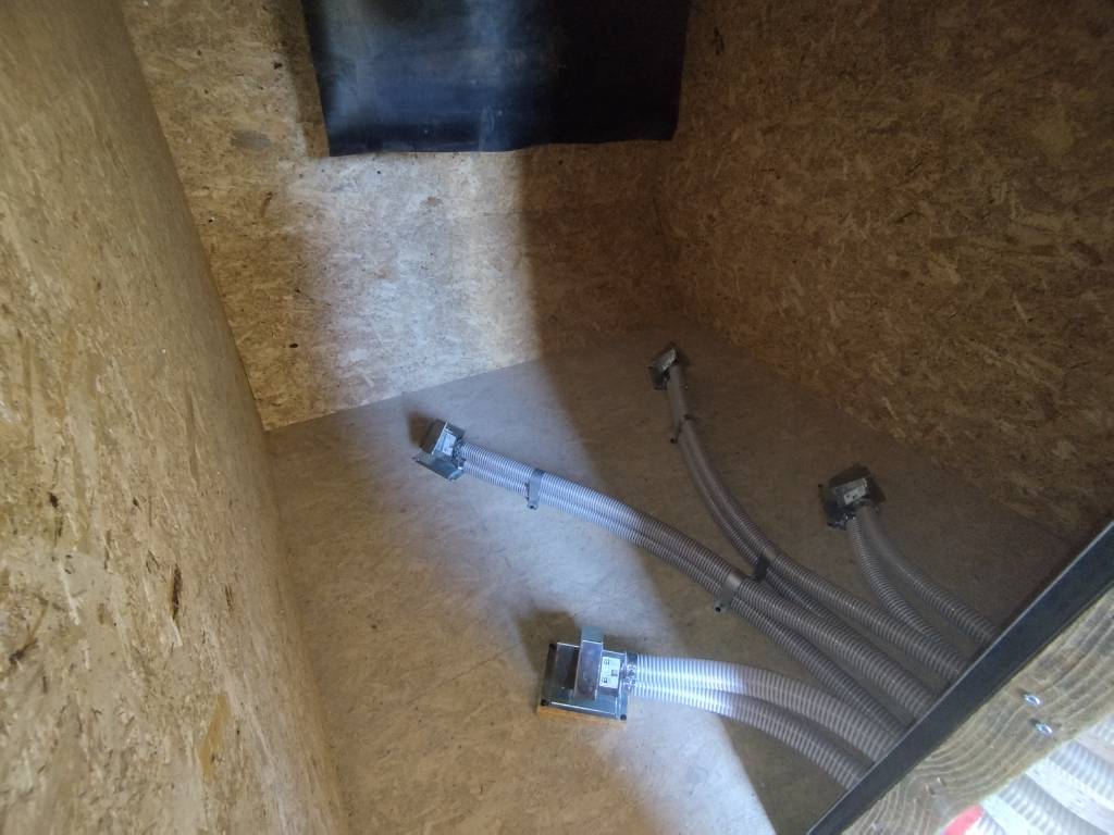 L'intérêt de ce système est que le client devrait réaliser un seul remplissage par camion souffleur dans la saison de chauffe, ce qui permet d'éviter les manutentions importantes de sacs de granulés. L'évacuation des fumées a été réalisée en ventouse verticale (contraintes techniques pour conformité DTU 24.1) de la marque TEN.