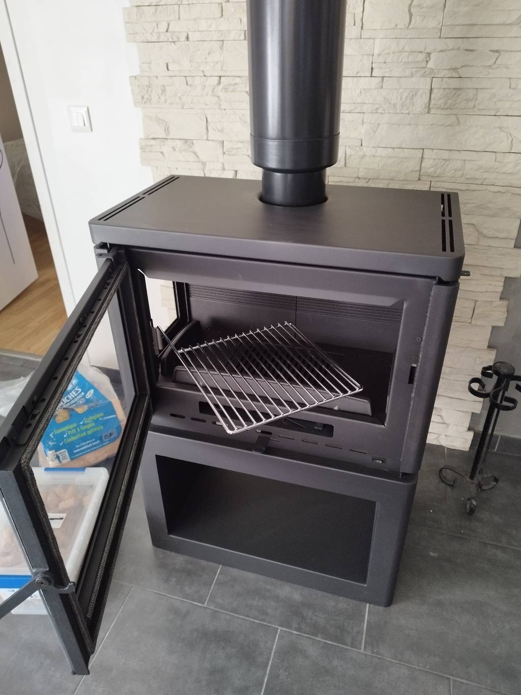 Démonstration au client d'un allumage par le haut, permettant une meilleure qualité de combustion (et donc moins polluant!) sur la phase d'allumage et un encrassement réduit du conduit !!!