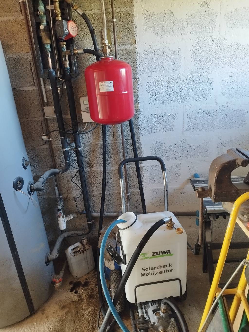 Nous avons donc remplacé plusieurs éléments non fonctionnels tels que le vase d'expansion, mise en place d'une vanne (obligatoire) avec remplacement du purgeur automatique en haut des capteurs, joints fuyards
