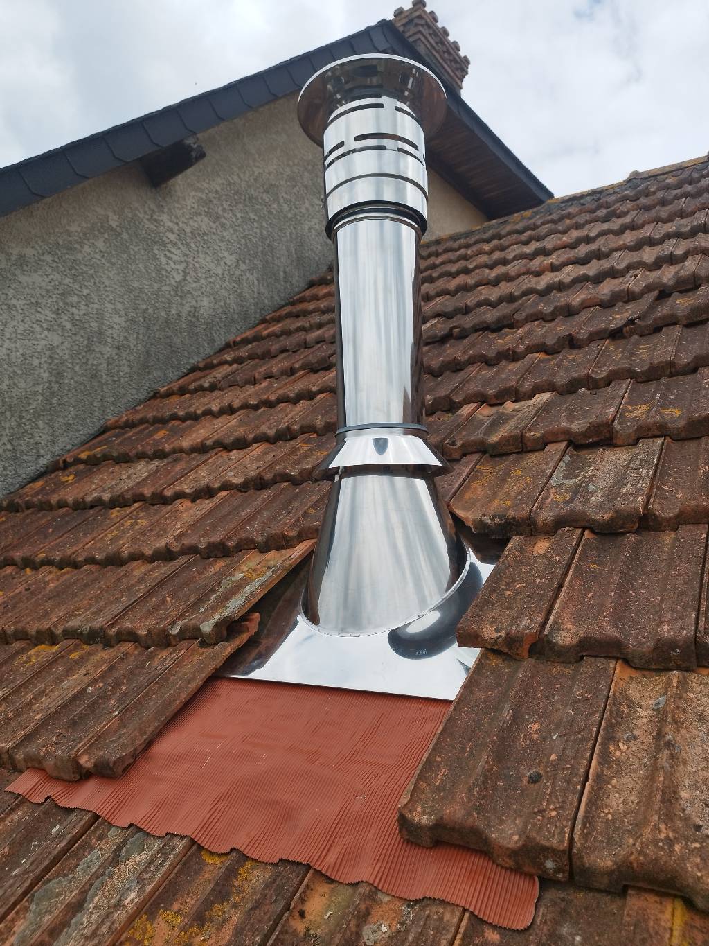 L'évacuation des fumées de la chaudière a été réalisée en ventouse verticale de notre partenaire MODINOX afin de respecter les normes de fumisterie